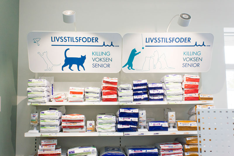 Haderslev動(dòng)物醫(yī)院位于丹麥哈澤斯萊烏,為動(dòng)物提供治療、疫苗接種、安樂(lè)死和閹割等服務(wù),針對(duì)動(dòng)物醫(yī)院的形象,采用貓和狗的組成的logo和環(huán)境圖形。深藍(lán)色、水藍(lán)色和白色的配色與內(nèi)飾相融合,打造了清爽的就診環(huán)境。貓和狗的環(huán)境圖形放置于貨架上和空間中,代替了傳統(tǒng)的廣告,整套導(dǎo)視系統(tǒng)靈動(dòng)且具有活力。動(dòng)物家屬看到類(lèi)似的標(biāo)識(shí)設(shè)計(jì),能感受到是一家溫馨、有愛(ài)心的寵物醫(yī)院,比起冷冰冰的指示,這種更具有說(shuō)服力,標(biāo)識(shí)力量不可小量。