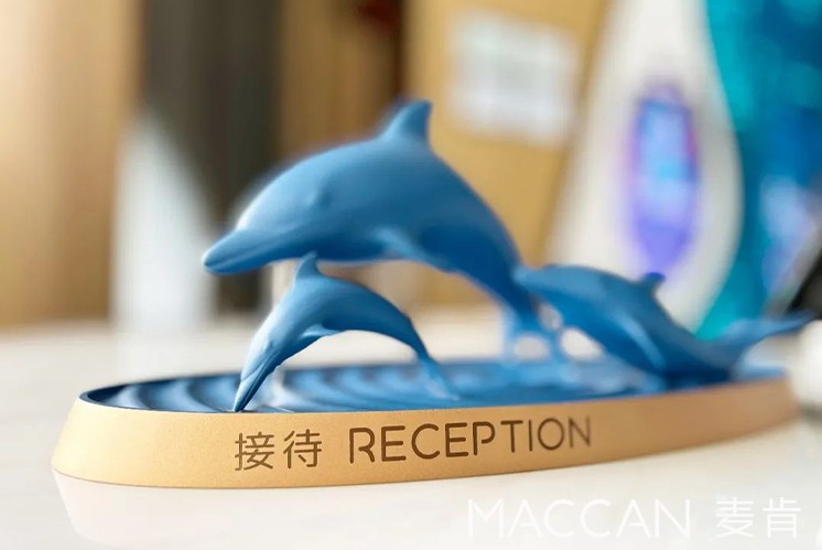 禮賓接待處的“海豚”指示牌更是第一時(shí)間躍入眼簾,靈動(dòng)的海豚,是海洋精靈的化身,誰(shuí)不想和萌動(dòng)、聰慧、治愈的海豚一起探索海洋的奇妙呢?標(biāo)識(shí)設(shè)計(jì)的溝通力此次來(lái)自于與海洋的對(duì)話,旅客從接待處便可知為主題酒店!