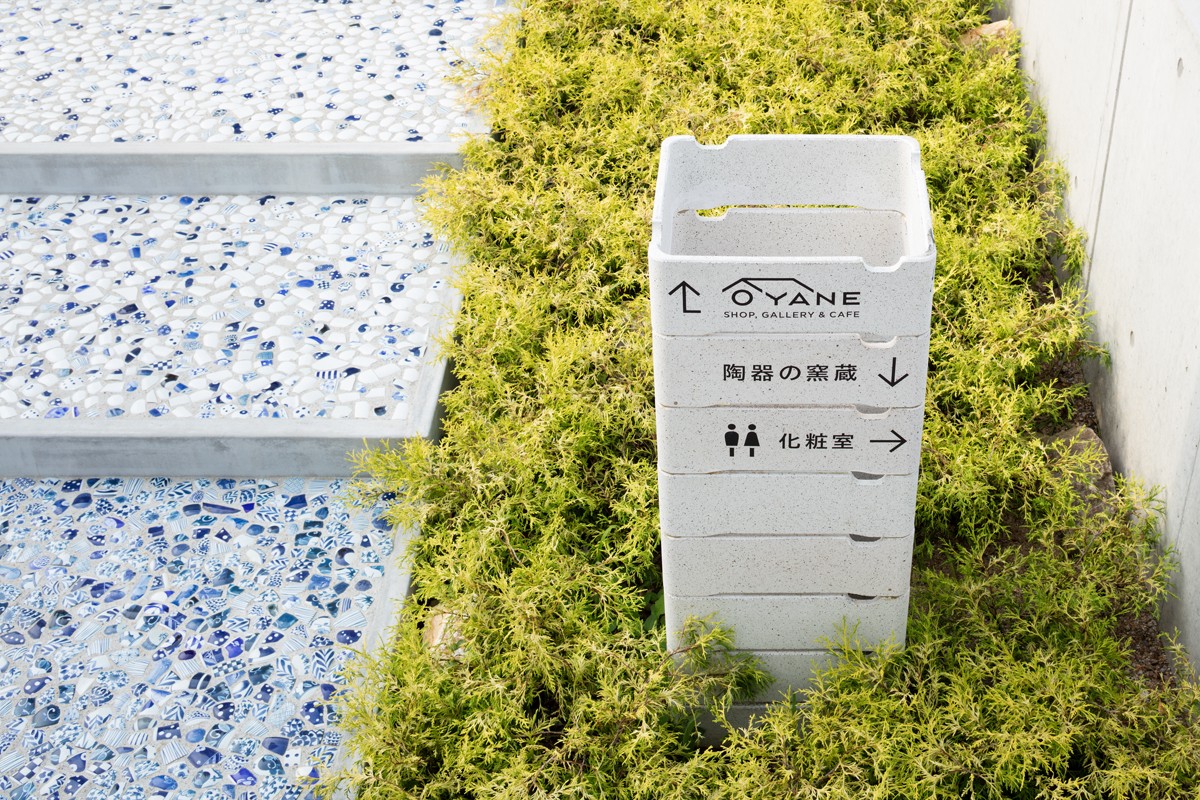新入口設(shè)計來源于該地區(qū)典型的舊工廠大屋頂,hokkyok將屋頂元素融入到logo設(shè)計中,視覺上與建筑相呼應(yīng)。內(nèi)部展架由烘烤容器架構(gòu),因此將白色的烘烤容器作為標(biāo)牌指引,標(biāo)牌采用陶瓷材質(zhì),整套導(dǎo)視系統(tǒng)的設(shè)計細(xì)節(jié)與陶藝設(shè)施息息相關(guān)。