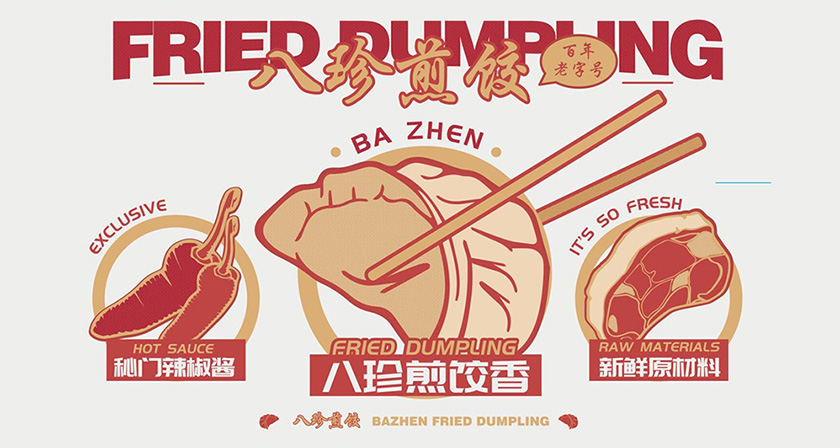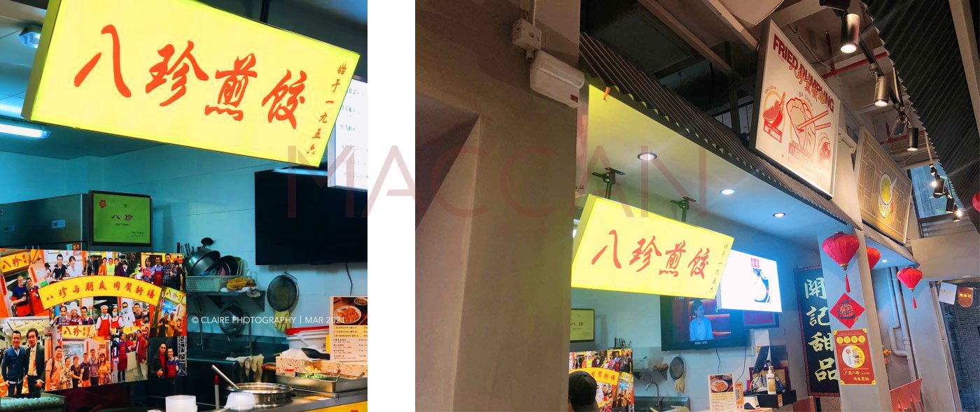 “八珍”始創(chuàng)于1956年,以經(jīng)營廣式傳統(tǒng)小吃為主打。永慶坊八珍煎餃招牌由麥肯打造,彰顯廣州老字號招牌特點。